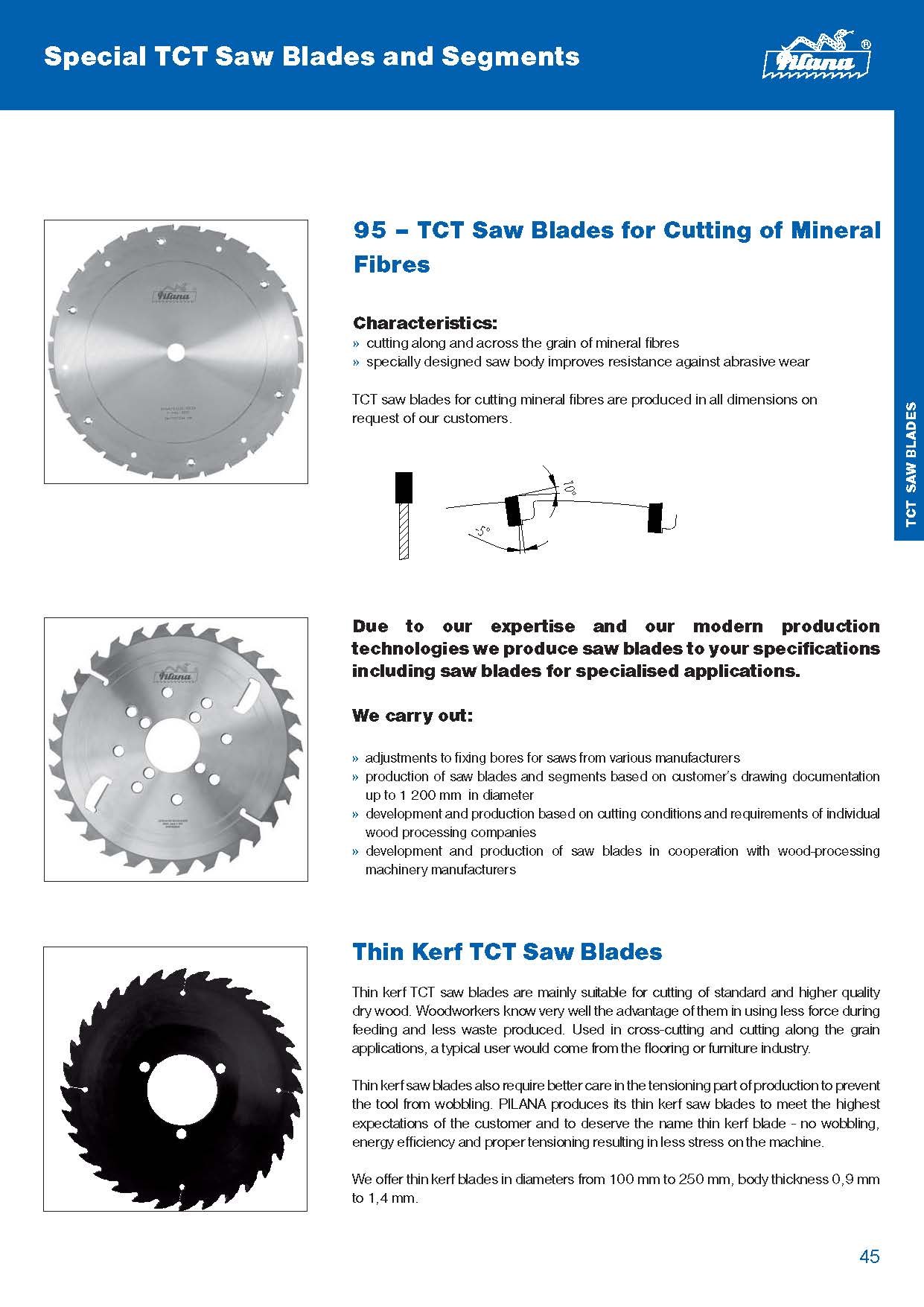 D—葉片直徑[mm],S—齒寬[mm],S—體厚[mm],D—孔徑[mm],z—齒數(shù),H max–最大切割高度[mm],dp max–最大法蘭直徑[mm],dmax–最大鉆孔直徑[mm],●– 有現(xiàn)貨的,○ – 按客戶要求制造
