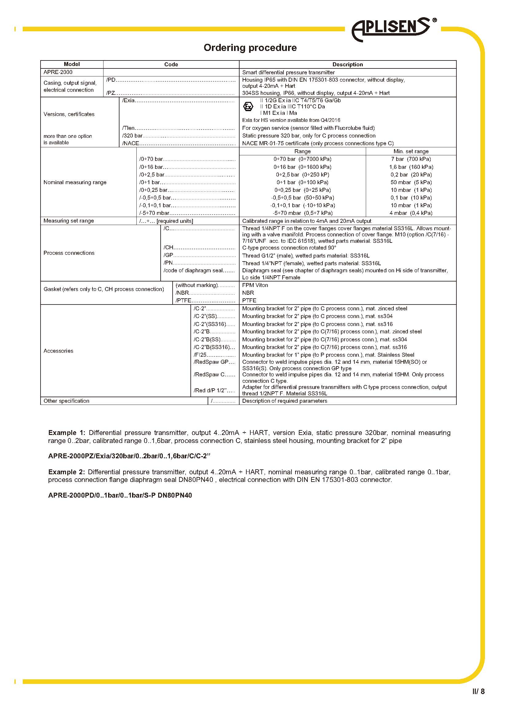 4…20 mA 輸出信號 + HART 協議ATEX 本質安全靜壓極限高達 320 bar準確度 0.1%接液部件材料 316L