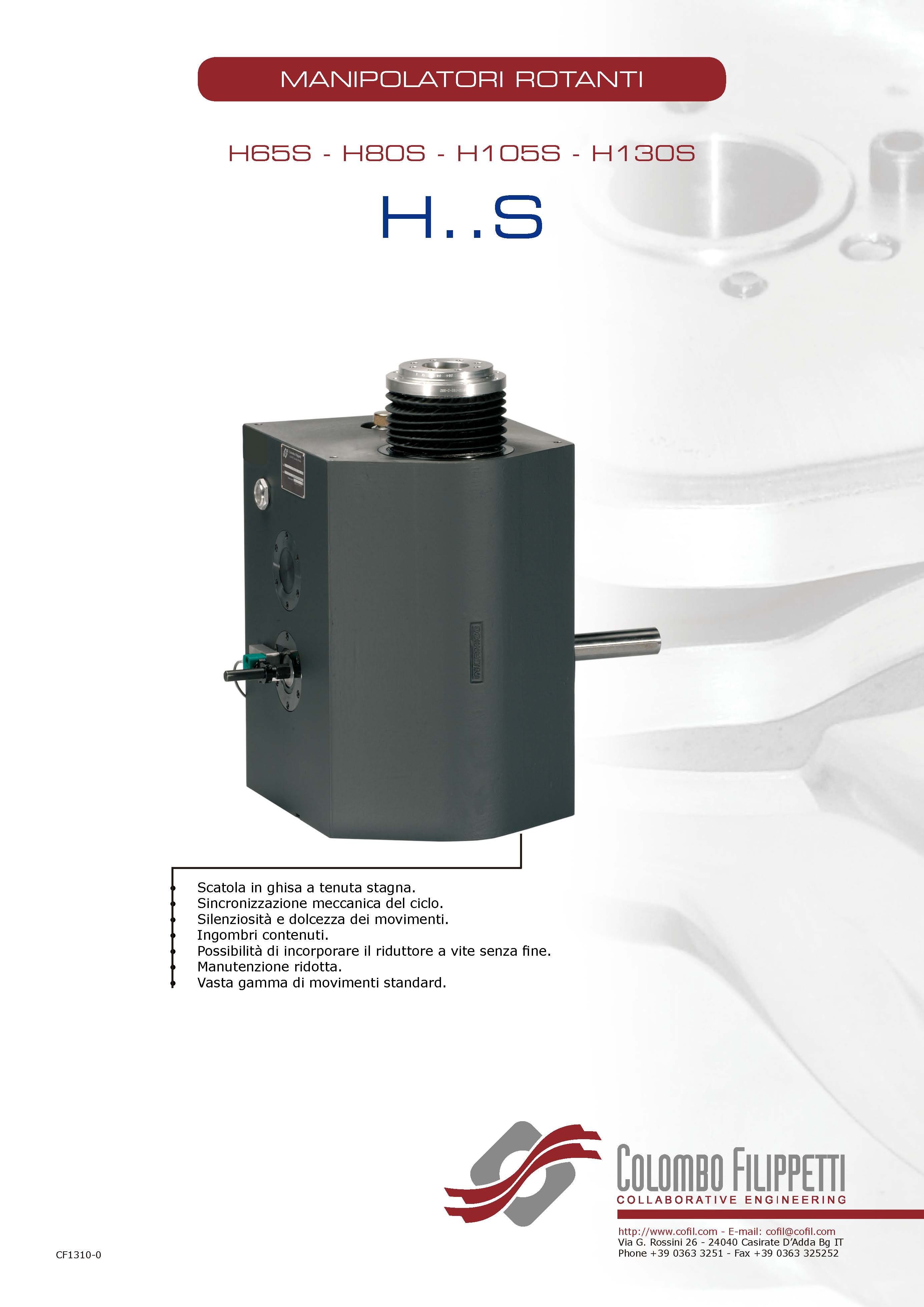 COLOMBO FILIPPETTI spa的H..S系列旋轉機械手是共軛雙凸輪機構,將輸入的勻速旋轉運動轉換為旋轉取放的典型運動,即旋轉間歇運動和線性交替運動。